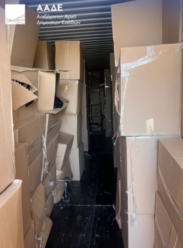 Τα κιβώτια περιείχαν ενδύματα ευτελούς αξίας, χρησιμοποιούμενα ως «βιτρίνα» για να παραπλανούν τις τελωνειακές αρχές, ενώ το κύριο εμπόρευμα είχε ήδη διοχετευθεί στην εγχώρια αγορά, χωρίς την καταβολή δασμών και ΦΠΑ.