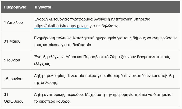 Μέχρι τότε θα πρέπει να έχεις καθαρίσει το οικόπεδο και να το έχεις δηλώσει, αλλά έχεις και την υποχρέωση να το διατηρείς καθαρό έως την 31η Οκτωβρίου, οπότε και ολοκληρώνεται η αντιπυρική περίοδος 2026.