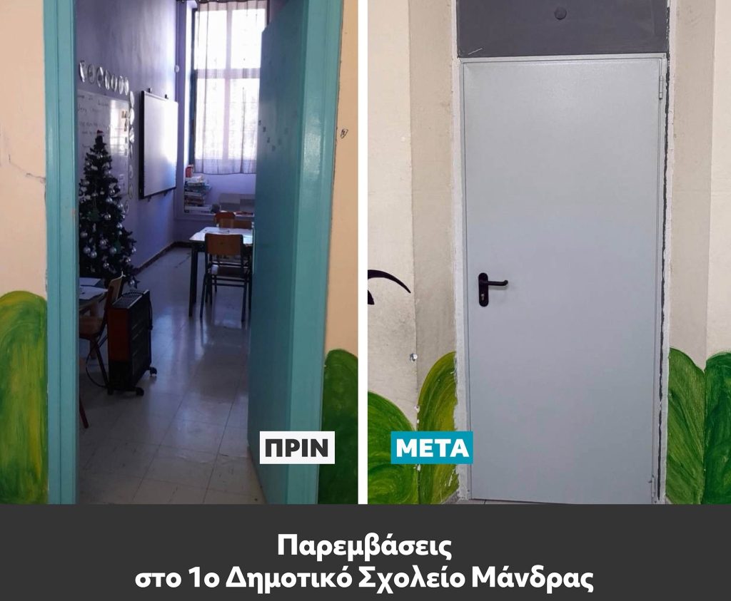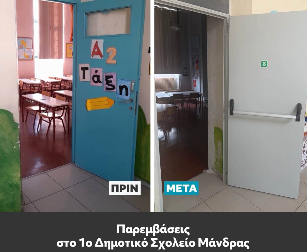 Η αντικατάσταση των θυρών στο 1ο Δημοτικό Μάνδρας ήταν μια αναγκαία παρέμβαση που αποκαθιστά ένα σοβαρό πρόβλημα ασφάλειας και δίνει μια καθαρή λύση σε μια εκκρεμότητα δεκαετιών.