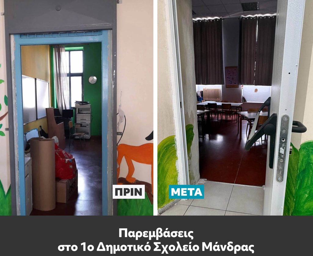 Η Δημοτική Αρχή Μάνδρας-Ειδυλλίας συνεχίζει το πρόγραμμα παρεμβάσεων στις σχολικές υποδομές, με στόχο τη σταδιακή αλλά σταθερή αναβάθμιση του συνόλου των σχολικών μονάδων του Δήμου.